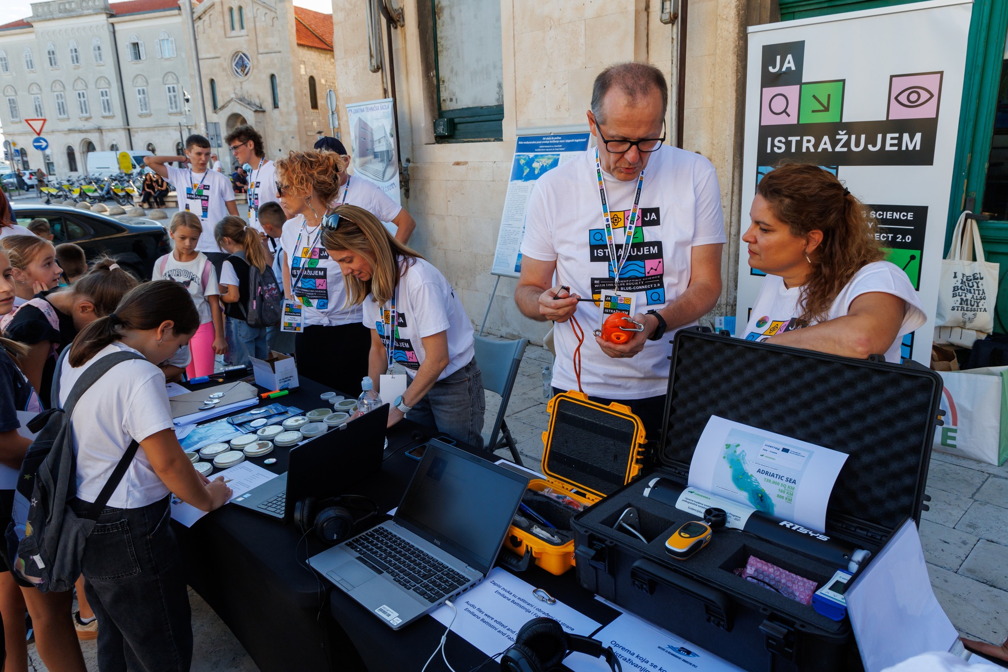 The European Researchers’ Night in Split was organized by the University of Split as part of the international Blue-connect project, with events taking place at Prokurative, the French Alliance, and the Faculty of Law. The manifestation is held simultaneously in many European cities with the same goal: to bring science closer to the general public, especially children and young people, and to show that research can be both fun and useful.