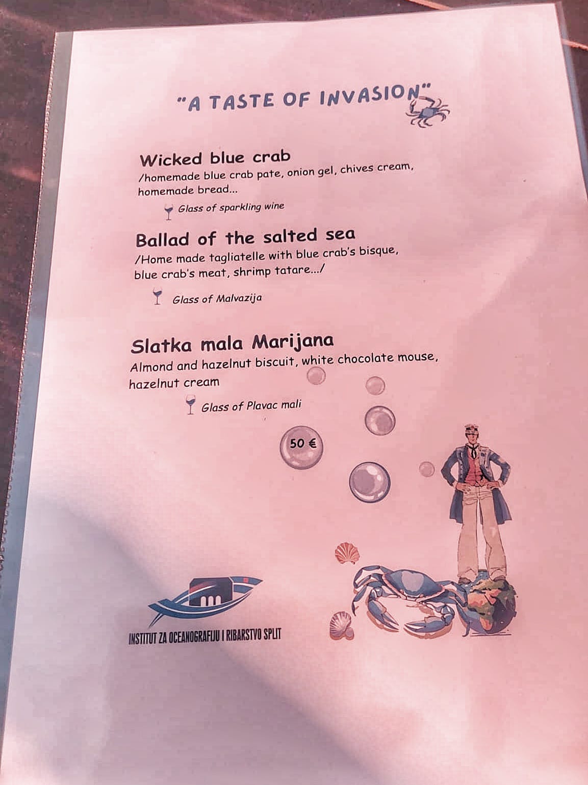 In order to promote the blue crab as a gastronomic delicacy, the Institute, in cooperation with the Corto Maltese restaurant in Split, organised an event called “Invasive Dinner”, where the meat of the blue crab caught in the Neretva Delta was prepared in various ways.