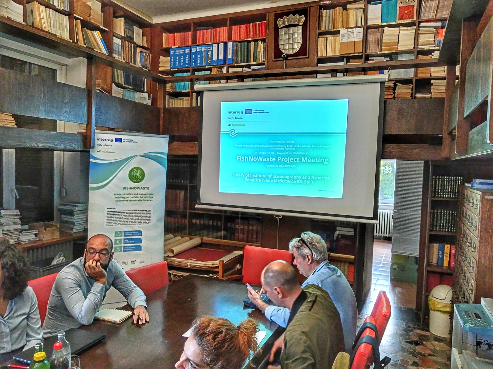Prvog dana, 27. svibnja, u knjižnici Instituta za oceanografiju i ribarstvo održan je treći radni sastanak projekta na temu zbrinjavanja otpada u ribarskim lukama. Partneri su raspravljali o dosadašnjim i planiranim aktivnostima unutar projektnih paketa, o napretku njihove provedbe te o budućim koracima.
